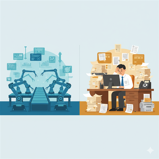 たとえば、顧客からFAXで届いた注文書を担当者が目視で確認し、基幹システムへ1件ずつ手入力する。型番の読み間違いや数量の転記ミスがあれば、顧客に電話で確認し直す――この1件あたり15〜20分のサイクルが、1日に何十回も繰り返されている。こうした光景は、2026年の今でもまだまだ珍しくないのが実情です。