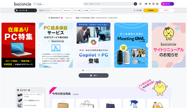 法人向けオフィス用品購買サイト「bizconcie(ビズコンシェ)」TOP