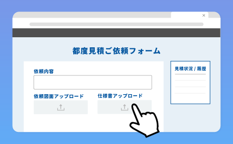 数量・仕様・納期・取引条件などに応じて、注文前に個別見積をオンラインで依頼・提示できる機能です。