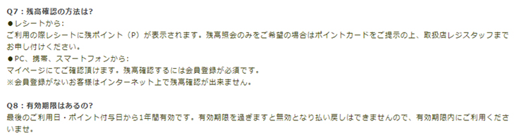 ポイント残高や有効期限は実店舗で買い物をしたとき、商品購入時のレシートに表示されますが、パソコンやスマートフォンを使ってマイページ上から確認することもできます。オンライン上で残高や期限をいつでも把握できるので、貯まったポイントを無駄にすることなく利用できます。