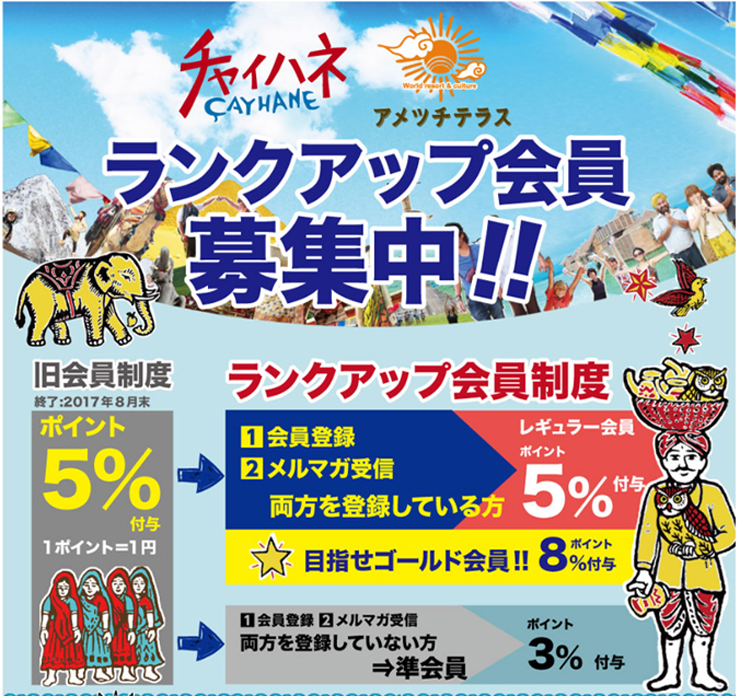 チャイハネの会員ランクは、会員登録とメルマガ受信の両方を登録しているユーザーが対象のサービスです。