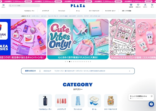 ・「PLAZA(プラザ)公式通販サイト」はこちら