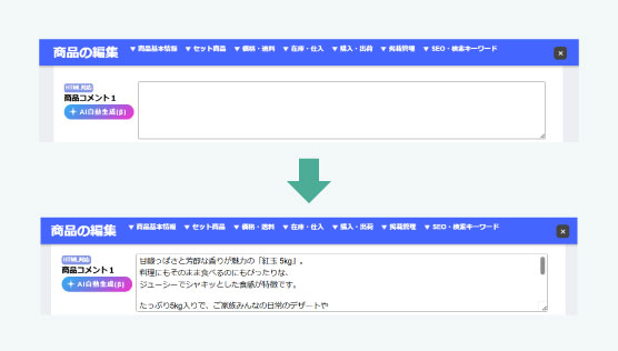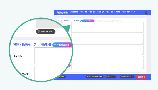 SEOに効果的なキーワードやメタ情報を、商品データをもとに生成AIが自動設定します。