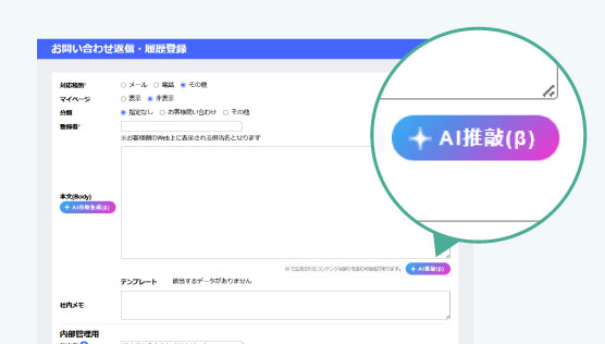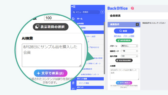 会員検索時にフリーワードや文章で入力された条件をAIが解析し、該当する会員情報を迅速に絞り込みます。